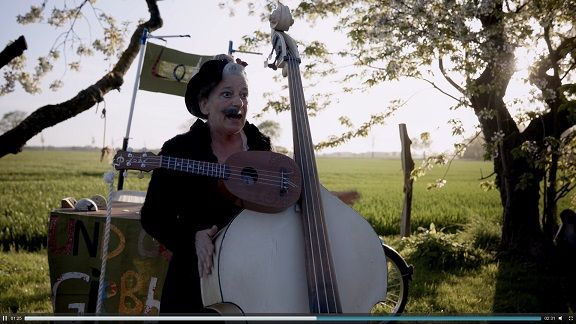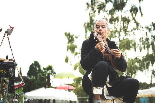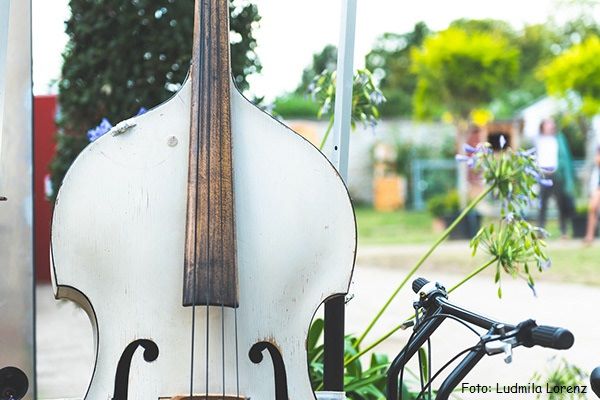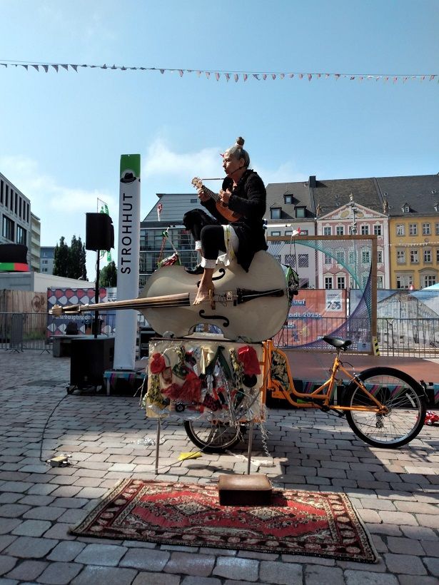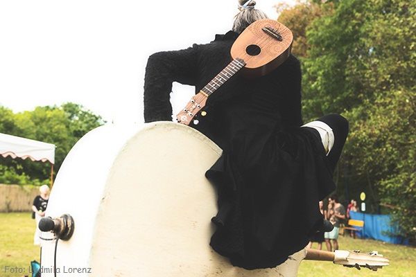 Mit ihren beiden Instrumenten – dem Kontrabass und der Ukulele – ist sie auf ihrem Lastenfahrrad unterwegs, um ihre Musik mit den Menschen zu teilen.