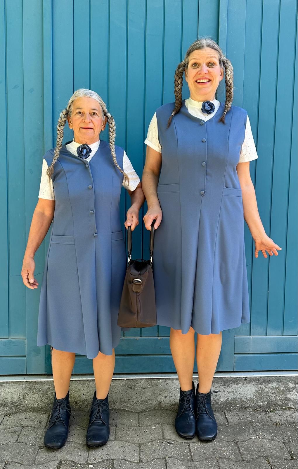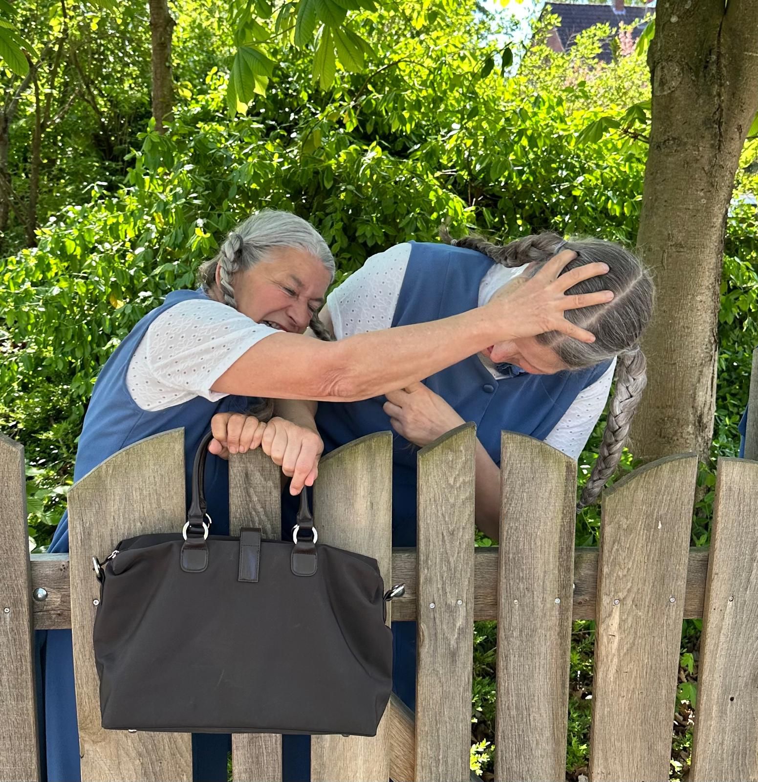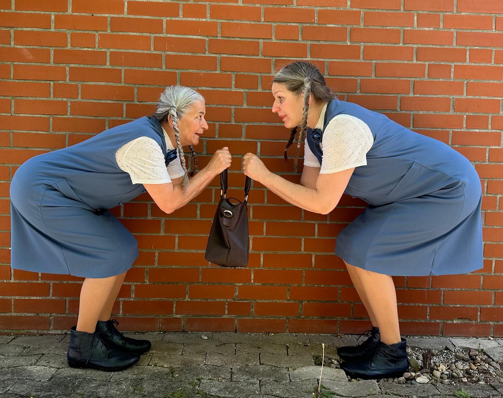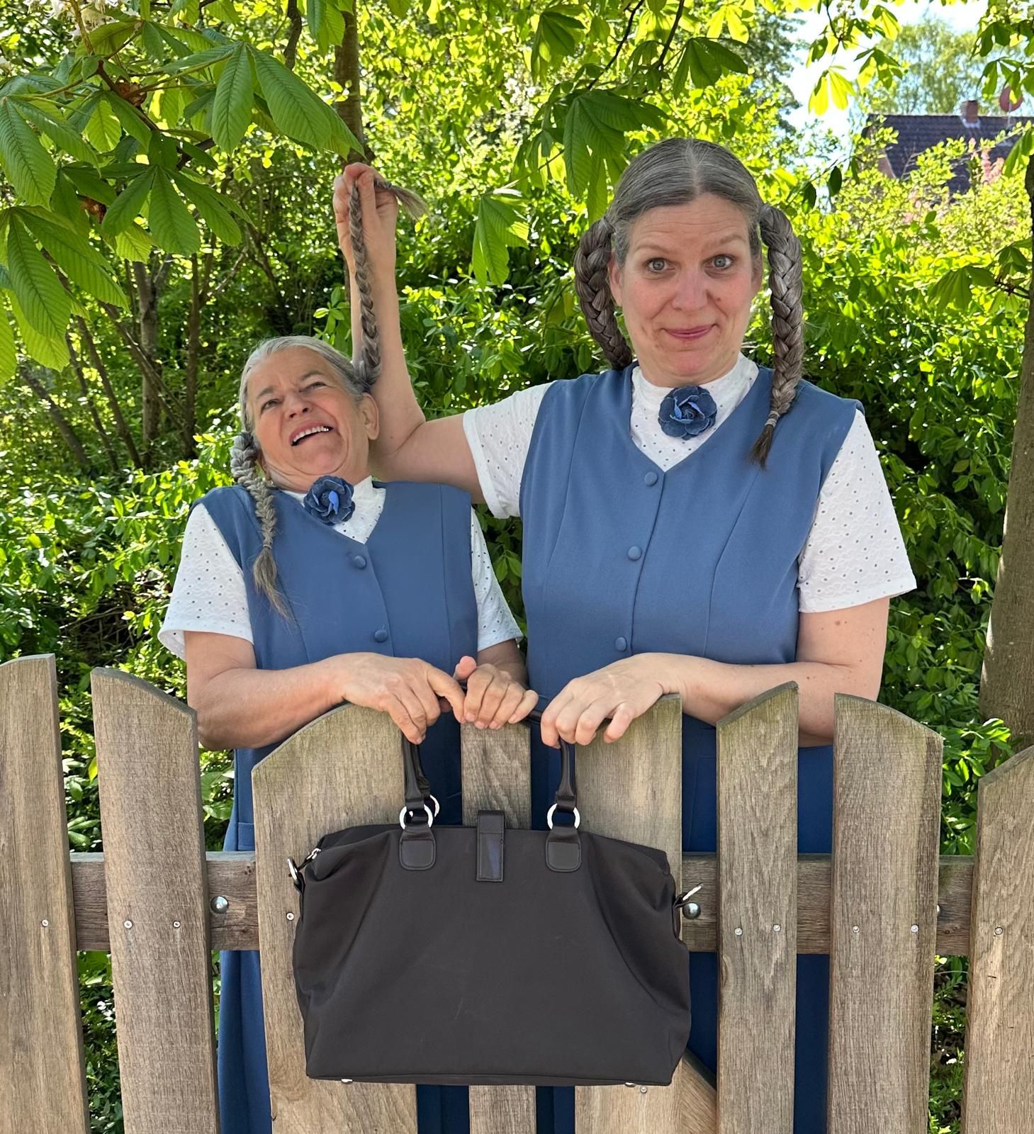 Auch die Menschen, denen die beiden begegnen, wundern sich über die ungewohnten Eigenheiten der beiden unübersehbaren Schwestern.