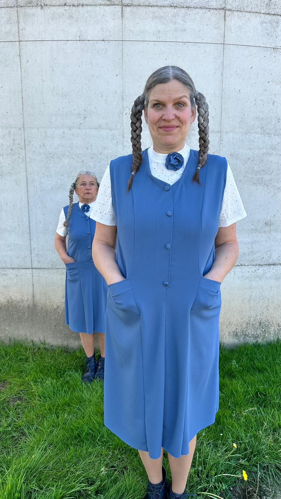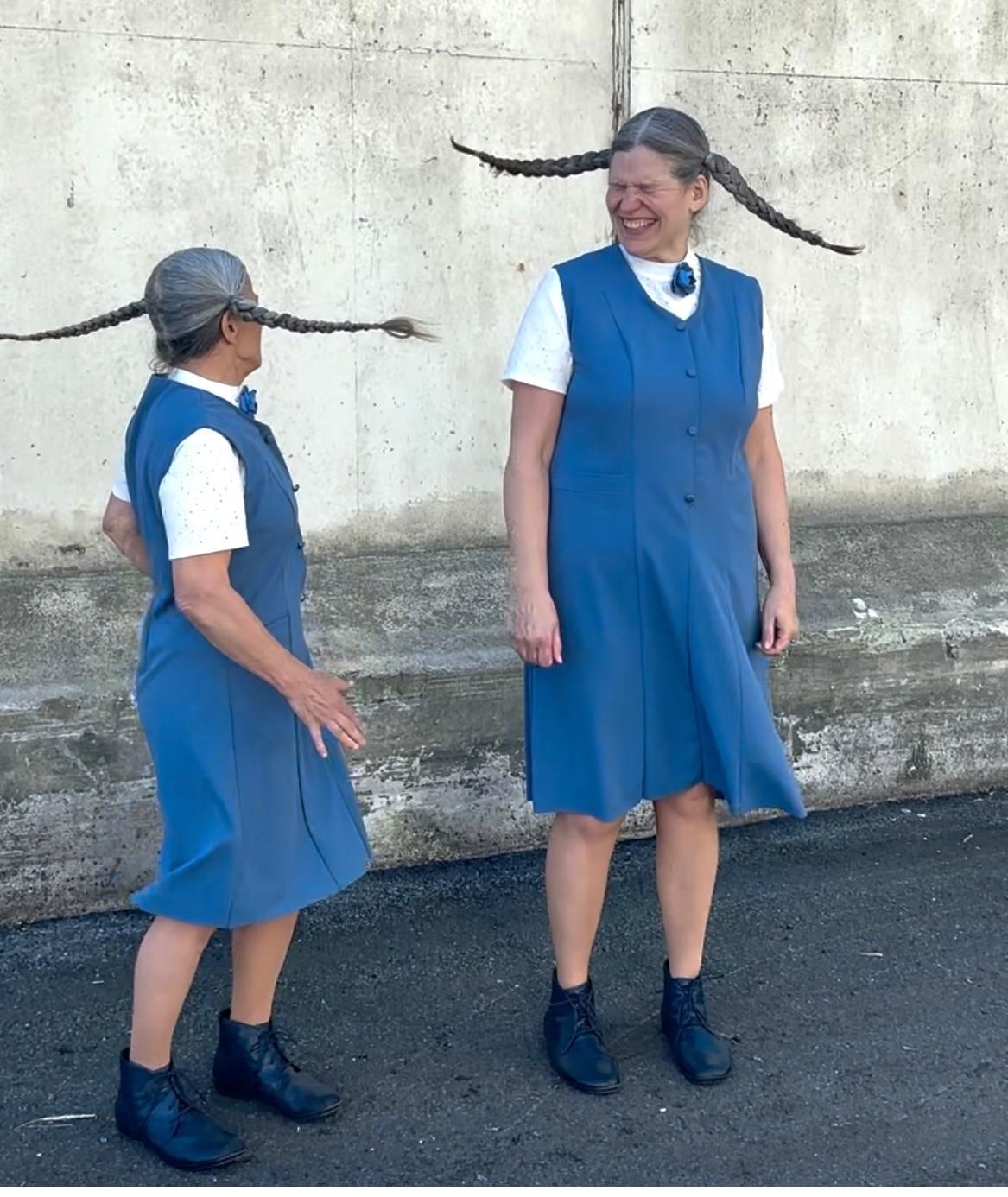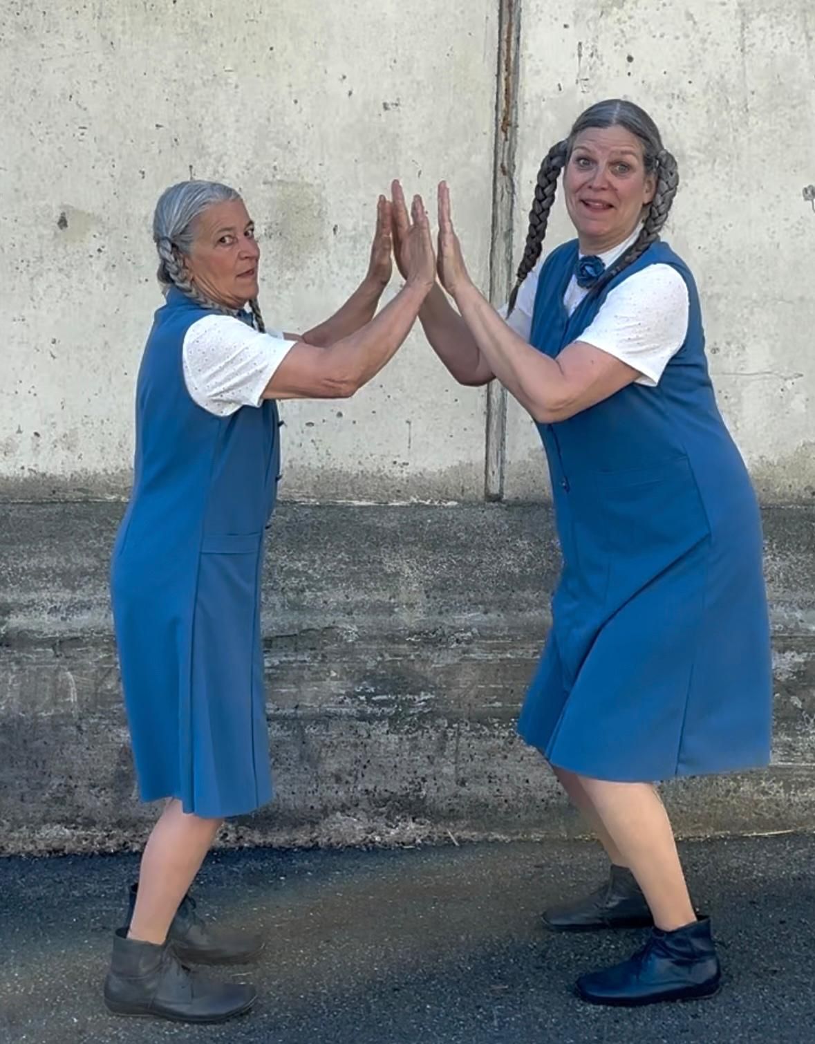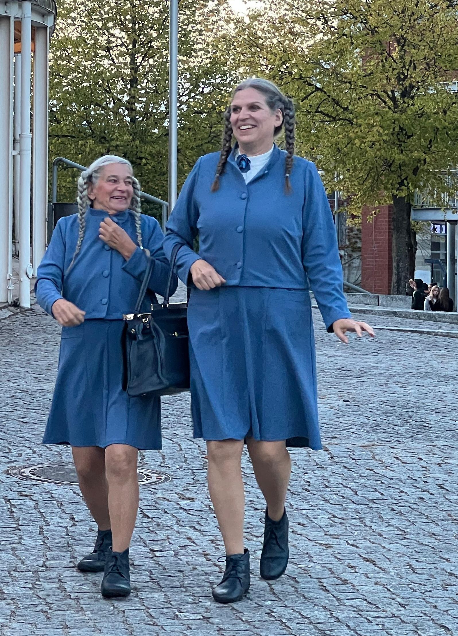 Auch die Menschen, denen die beiden begegnen, wundern sich über die ungewohnten Eigenheiten der beiden unübersehbaren Schwestern.