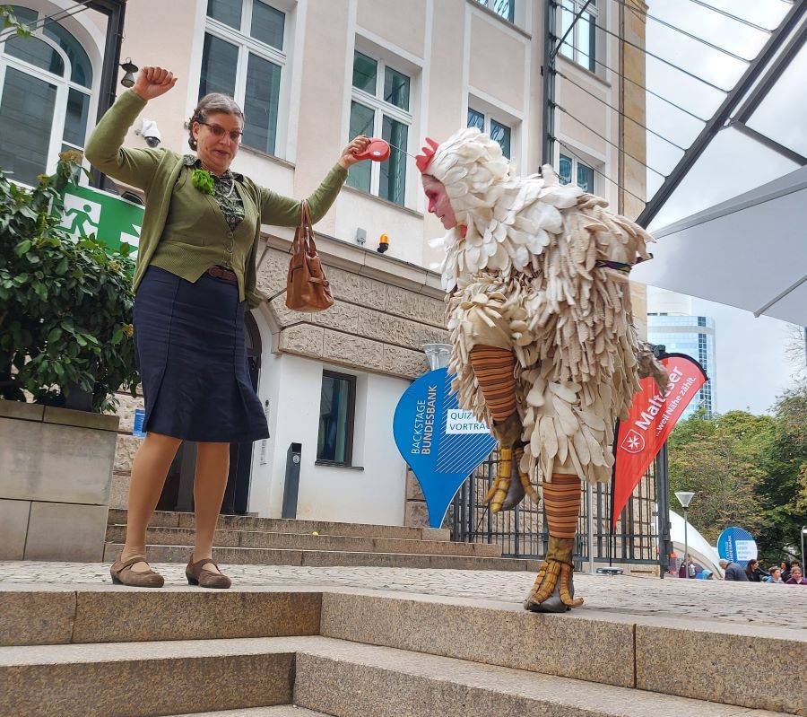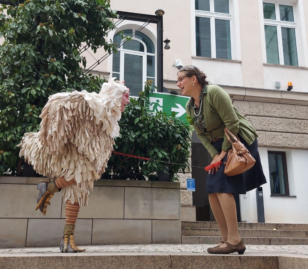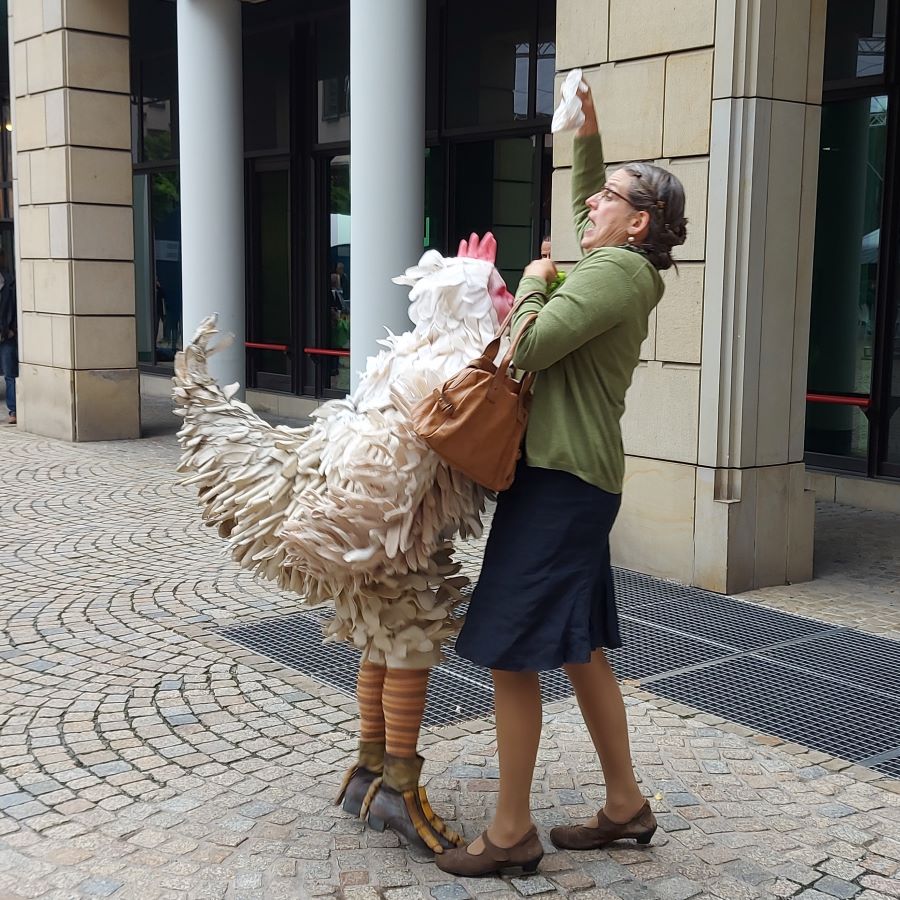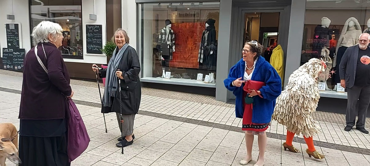 Frau Huber betreut gerade ein ganz besonderes Haustier: die gleichermaßen kluge wie prächtige Henne Anneliese. Diese kann vielerlei bemerkenswerte Kunststückchen und ist so talentiert, dass sie „Platz" macht, ohne Federn zu lassen. Wenn Anneliese besonders gut drauf ist, legt sie sogar etwas – meist ein Frühstücksei. Und mit verführerischen Leckerlis lässt sie sich häufig auf den richtigen Weg locken – aber manchmal auch von diesem abbringen.
