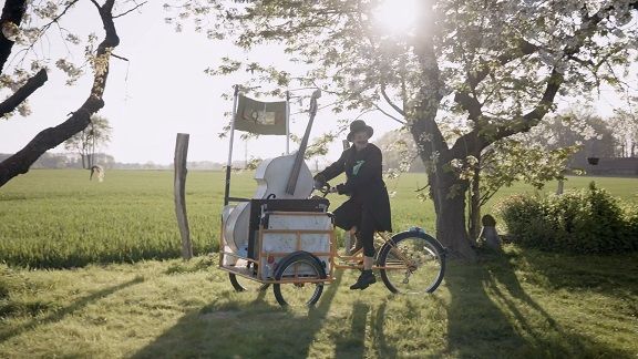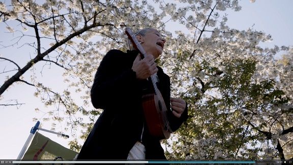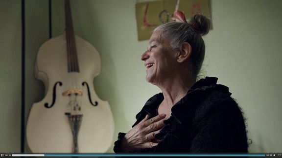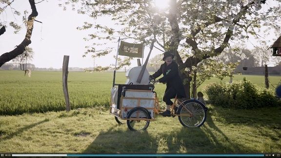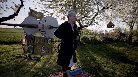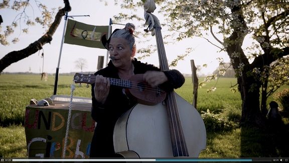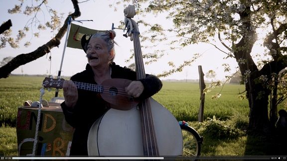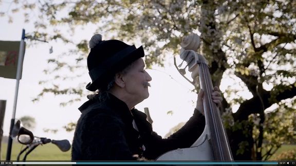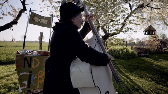Mit ihren beiden Instrumenten – dem Kontrabass und der Ukulele – ist sie auf ihrem Lastenfahrrad unterwegs, um ihre Musik mit den Menschen zu teilen.